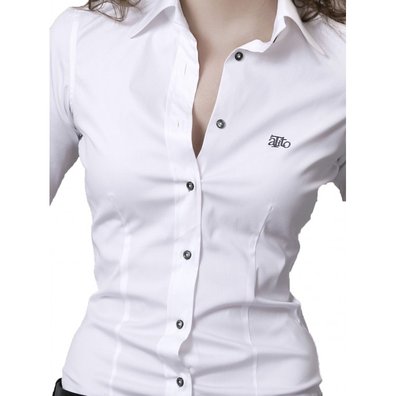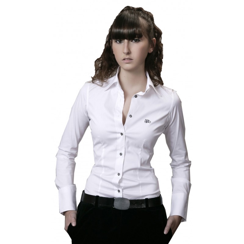 Chemise très ajustée, pour femme, réalisée dans un tissu popeline extensible.